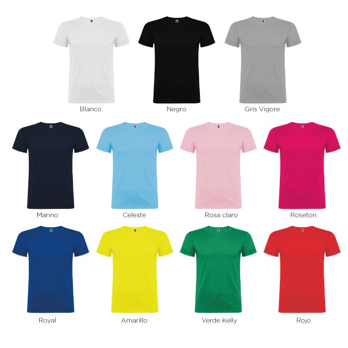 Camiseta 100% algodón con área de impresión máxima tamaño A4 en el pecho o espalda.