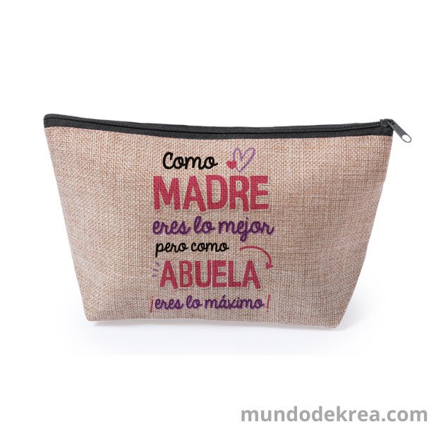 Neceser de poliéster color yute natural con cremallera. Impresión por sublimación.