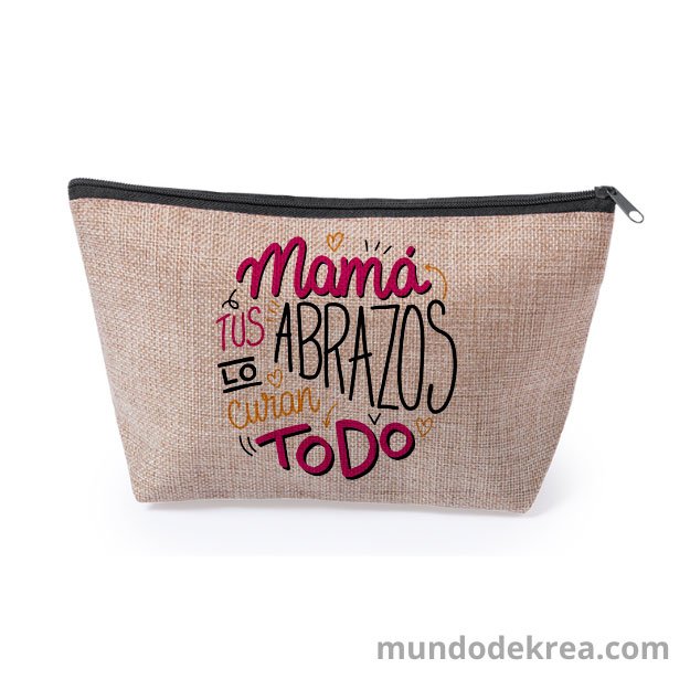 Estuche de poliéster color yute natural con cremallera, sublimado a todo color.