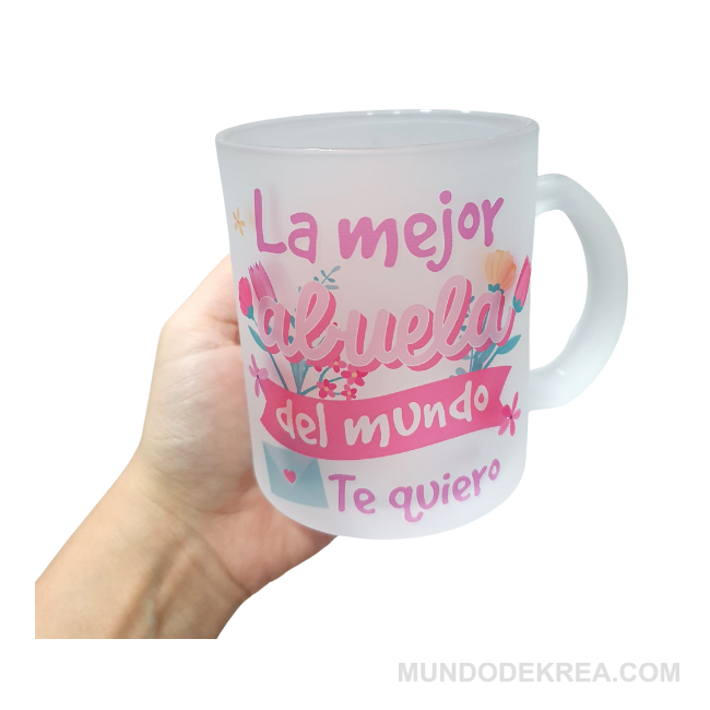 Taza de cristal impresa a todo color por sublimación. Al ser de cristal el diseño impreso es visible también por la cara interior.